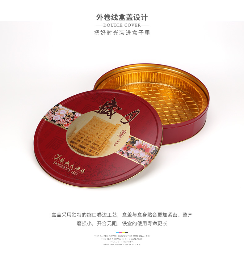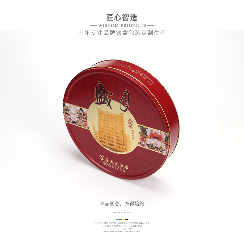 定制圓形月餅鐵盒廠家正宗榴蓮月餅鐵盒百草味月餅包裝鐵盒